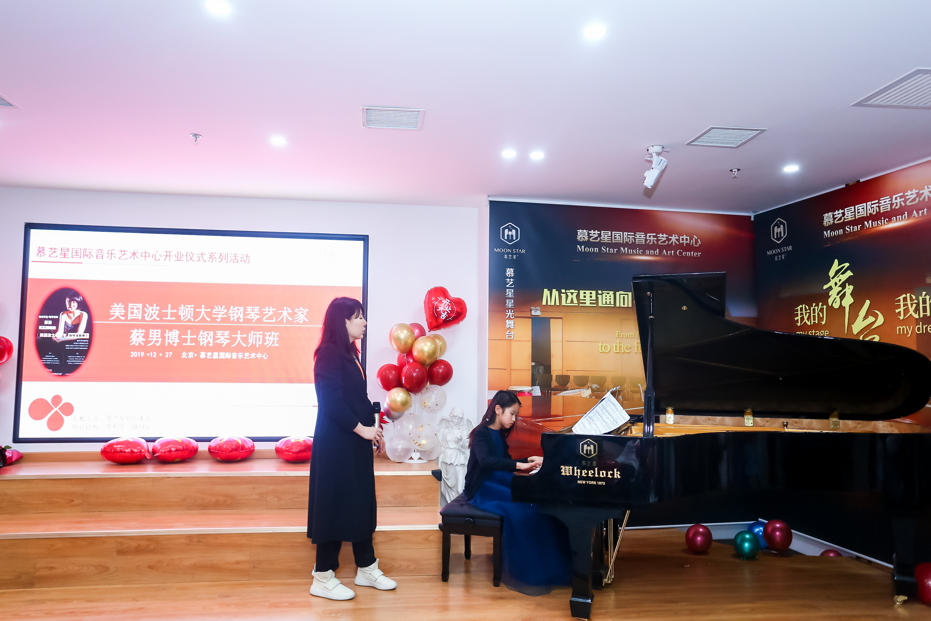 作为慕艺星开业的系列活动之一,下午来自美国波士顿大学的钢琴艺术家,慕艺星钢琴导师蔡男博士的大师班,吸引了众多的家长的关注,晚上慕艺星精彩欢乐的师生音乐会和抽奖更是给孩子们留下了深刻的印象!